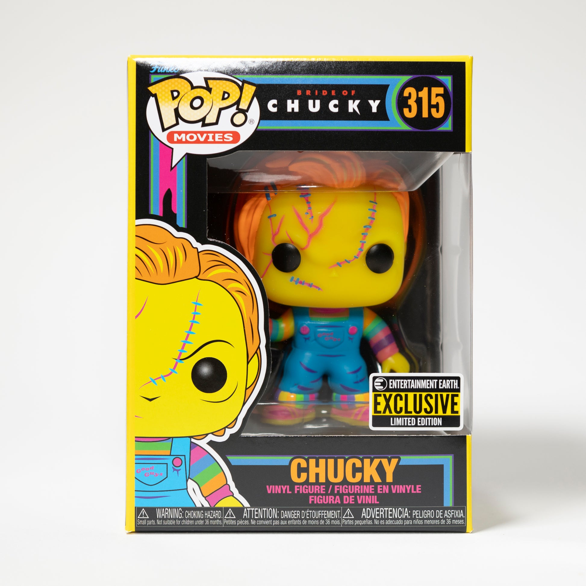 Funko Pop Movies Bride of Chucky 315 Chucky Entertainment Earth Exclusive Limited Edition Black Light