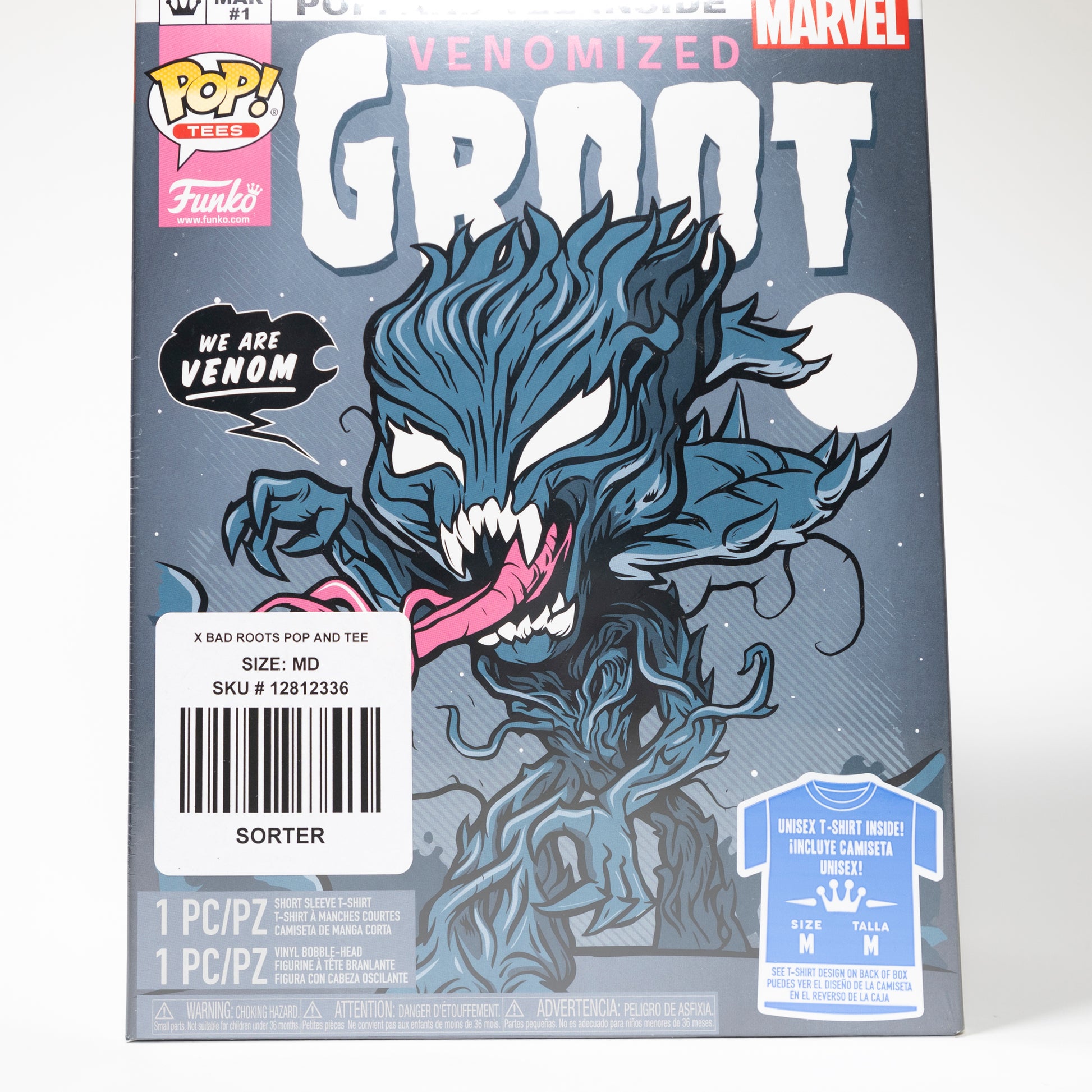 Funko Pop Tees Marvel Venom 511 Venomized Groot Glow in the Dark box set M